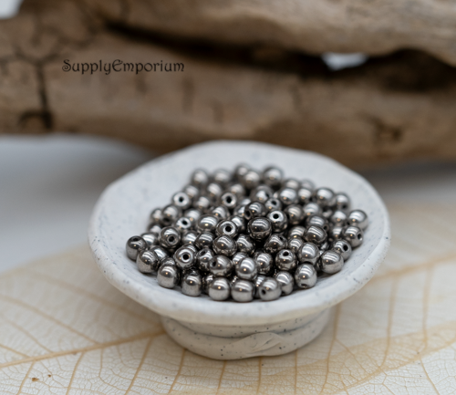 3mm Jet Argentic Full Czech Glass Druk – 100 Pieces – 2648