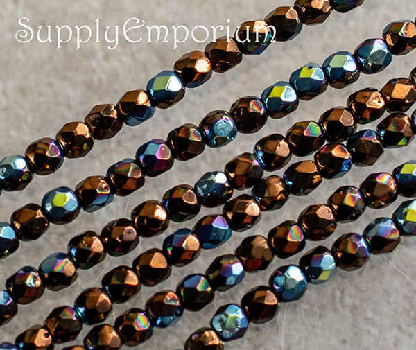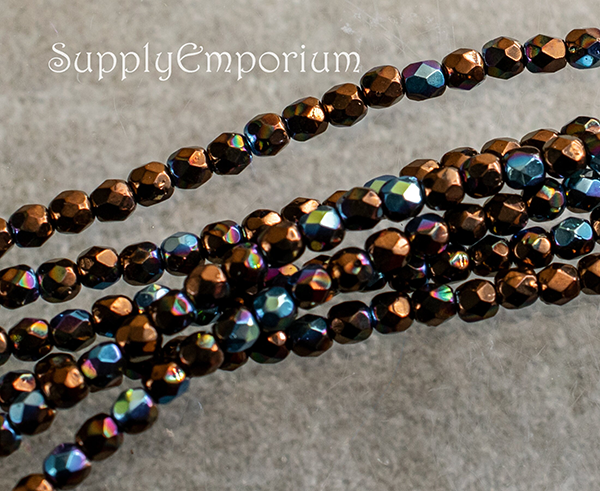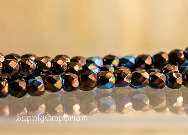3mm Jet Dark Bronze AB Czech Fire Polish Round – 50 Pieces – 1908R
