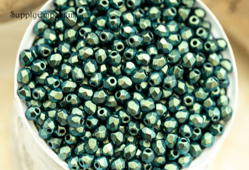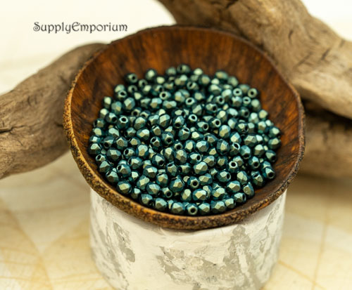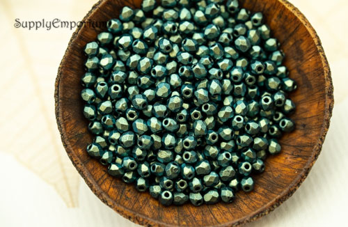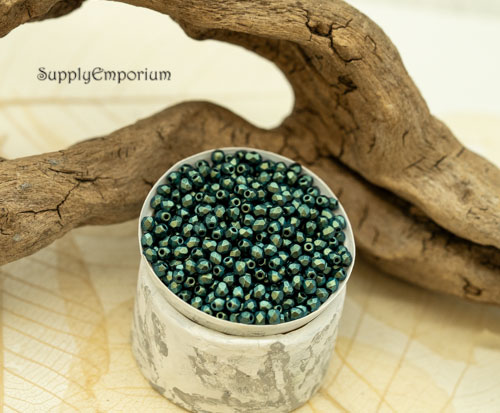 3mm Jet Green Czech Glass Fire Polish Round – 50 pieces – 5172R