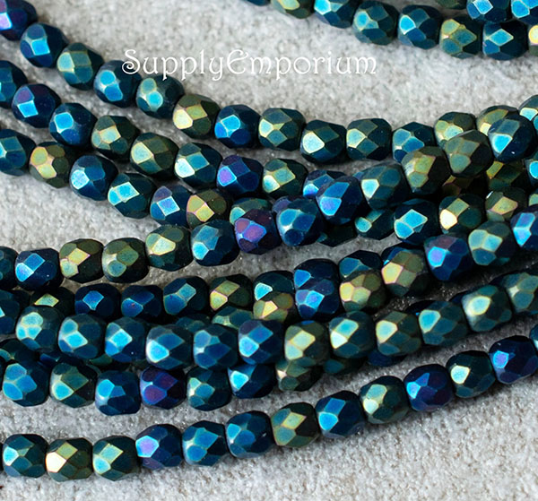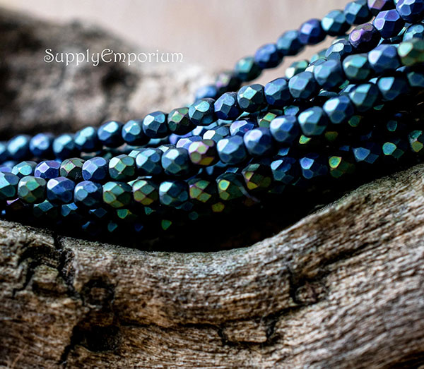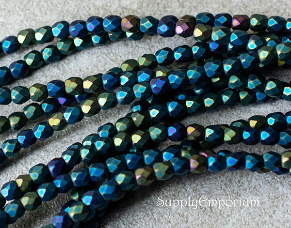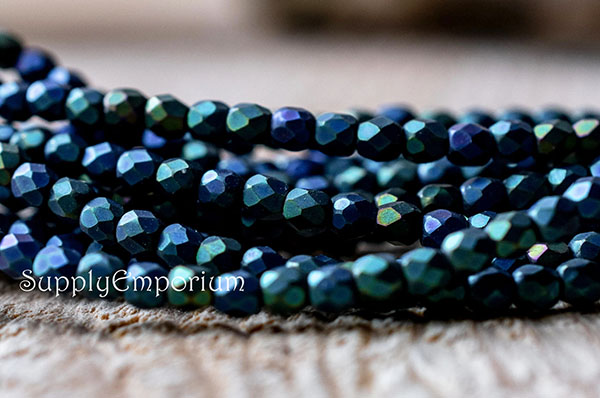 3mm Jet Matte Iris Green Czech Fire Polish Round – 50 pieces – 5956R