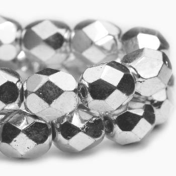 3mm Metallic Silver Czech Fire Polish Round – 50 pieces – 2365