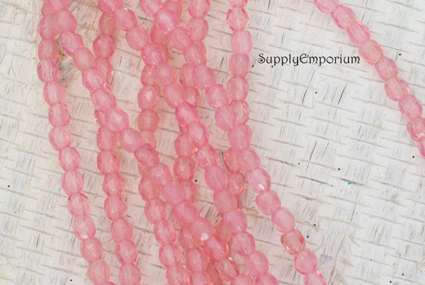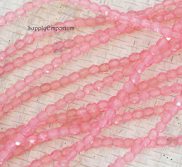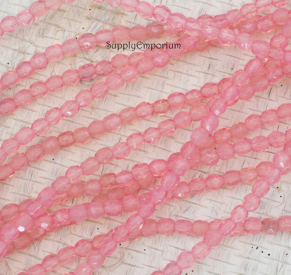 3mm Milky Pink Czech Fire Polish Round – 50 pieces – 6473