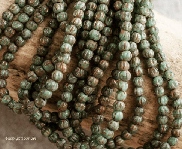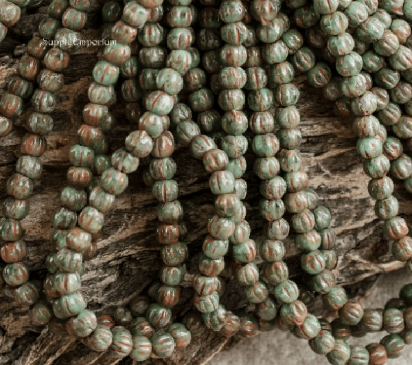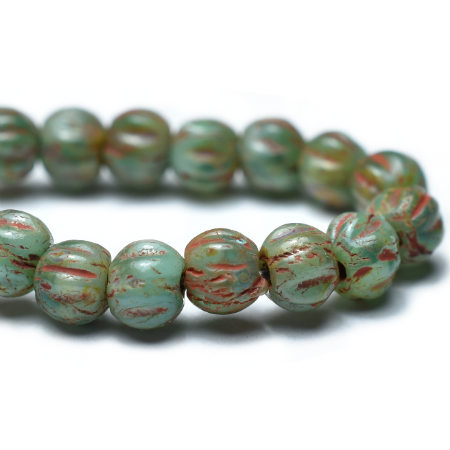 3mm Sea Green Picasso Czech Melon Round – 50 pieces – 2849