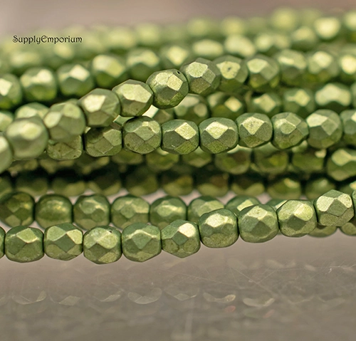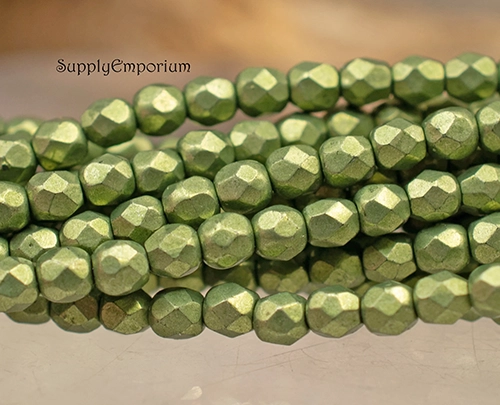 3mm Sueded Gold Fern Czech Fire Polish Round – 50 pieces – 6329R