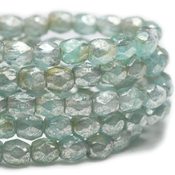 3mm Tea Green With Mercury Finish Czech Fire Polish Round – 50 pieces – 3039R