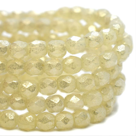 3mm Yellow Ivory with Mercury Finish Czech Fire Polish Round – 50 pieces – 2547R