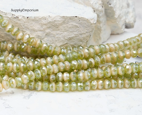 3x5mm Olive Beige Luster Czech Rondelle – 50 pieces – 4812RR