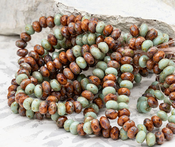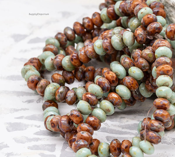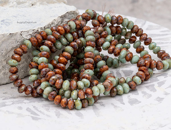 3X5mm Orange Sage Picasso Mix Czech Rondelle – 30 pieces – 1936RA