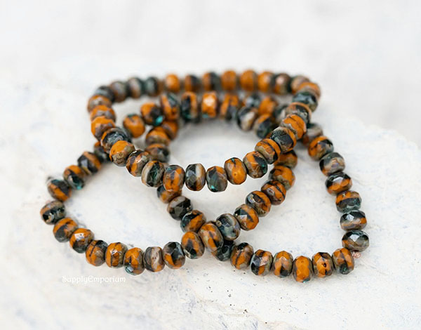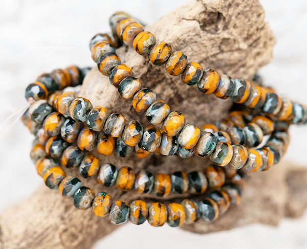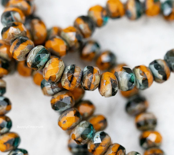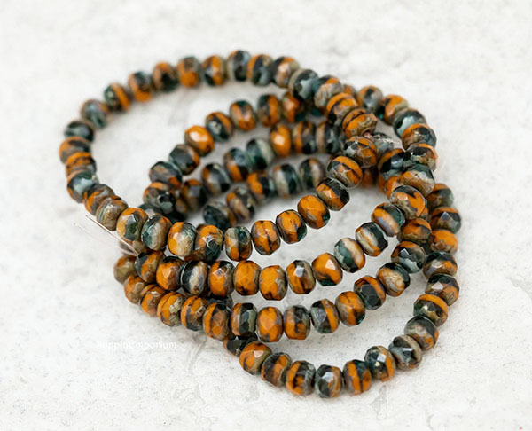 3x5mm Pumpkin/Green/Ivory Mixed Picasso Czech Rondelle – 30 pieces – 1661R