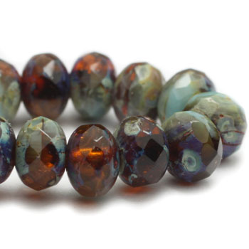 3X5mm Topaz/Green Picasso Czech Rondelle – 30 pieces – 1865R