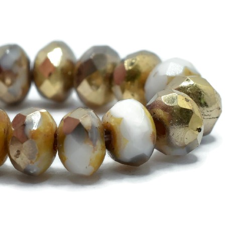 3X5mm White Picasso with Gold Czech Rondelle – 30 pieces – 2188RA