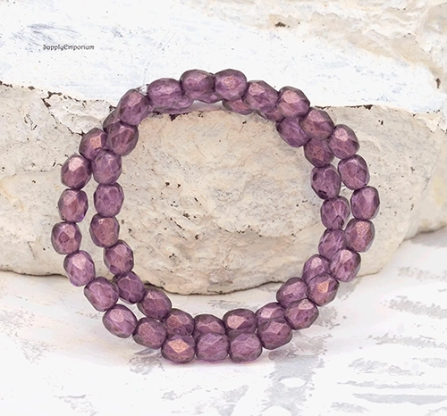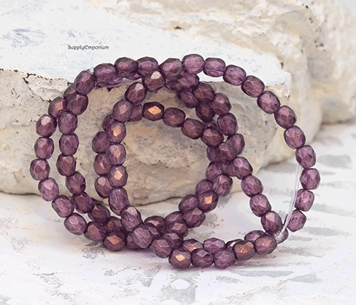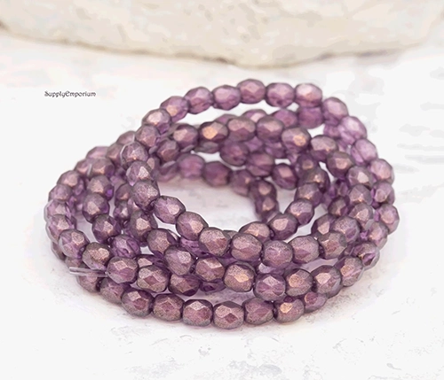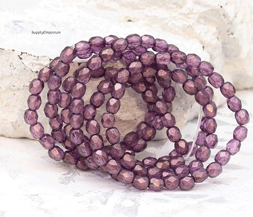 4mm Amethyst Czech Fire Polish Round – 50 Pieces – 563