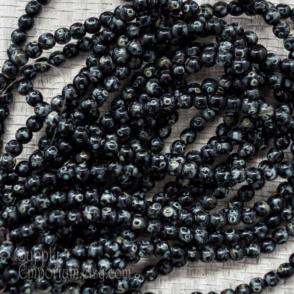 4mm Black Picasso Czech Druk – 50 pieces – 639