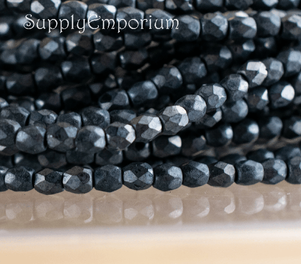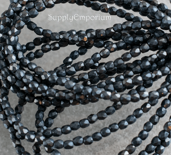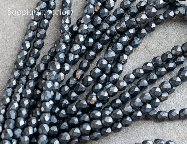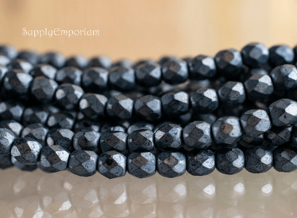 4mm Charcoal Czech GlassFire Polish Round – 50 Pieces – 6710