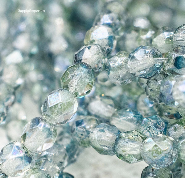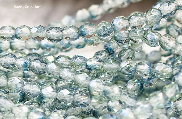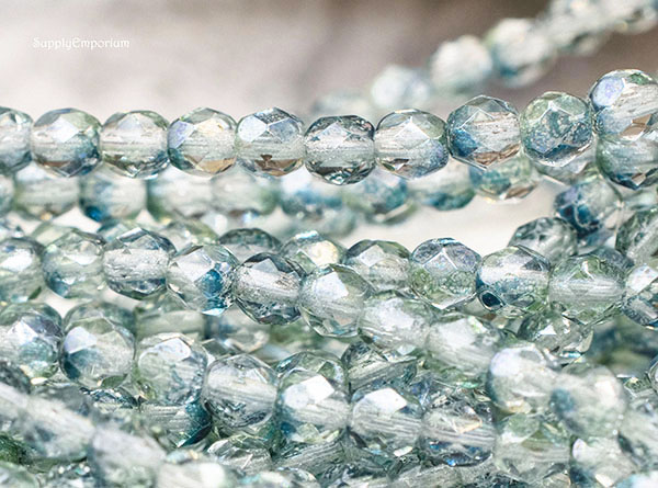 4mm Denim Green Czech Fire Polish Round – 50 pieces – 4753