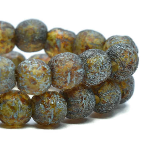 4mm Etched Topaz Picasso and Turquoise Czech Druk – 50 pieces – 3294R
