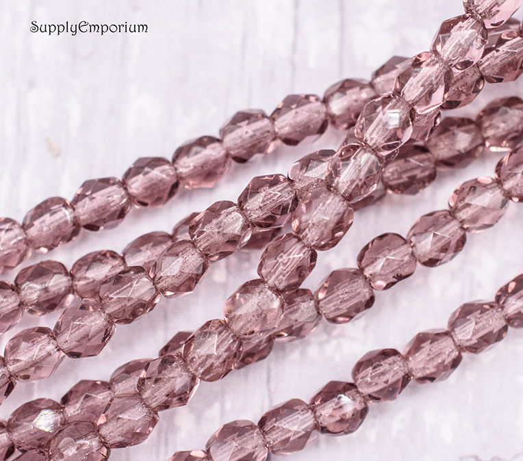4mm Medium Amethyst Czech Fire Polish Round – 38 pieces – 2173R