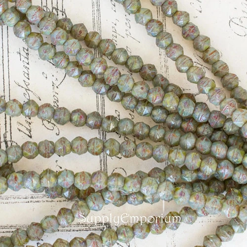 4mm Pale Artichoke Picasso Czech English Cut Round – 50 pieces – 1885