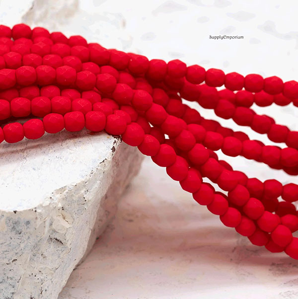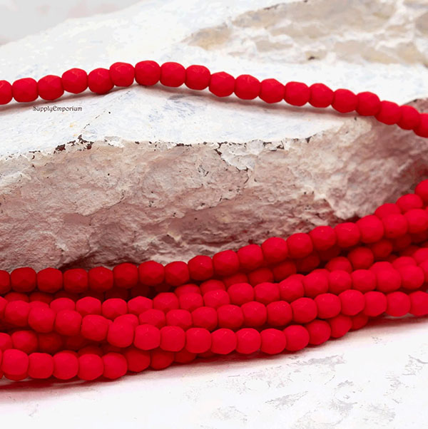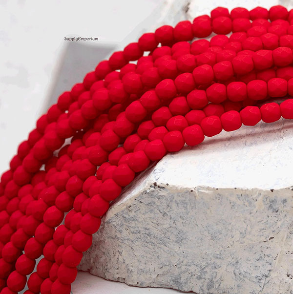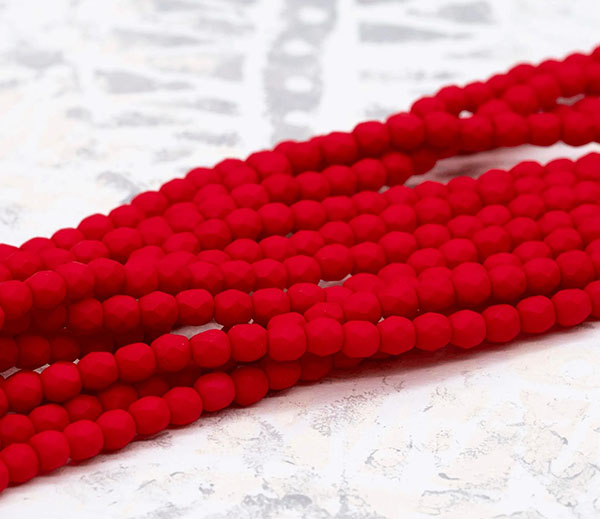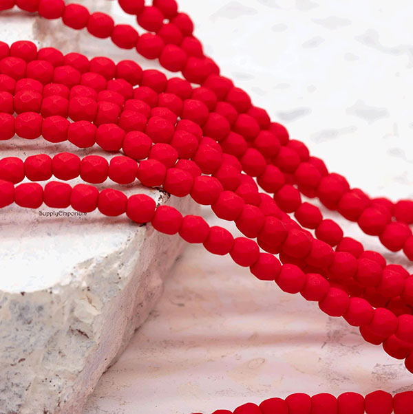 4mm Saturated Red Czech Fire Polish Round – 50 pieces – 2392RR