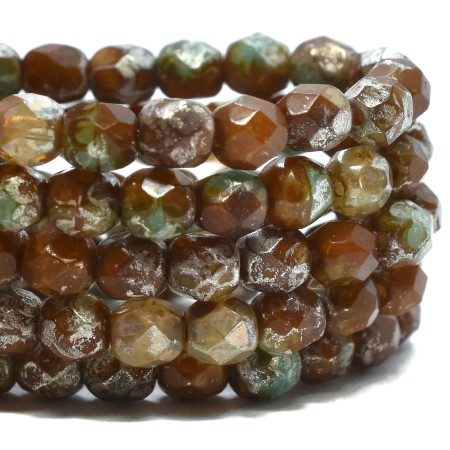 4mm Sea Green Brown Picasso Czech Fire Polish Round – 50 pieces – 6712