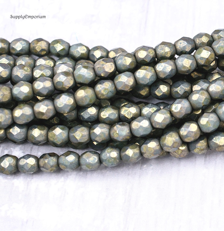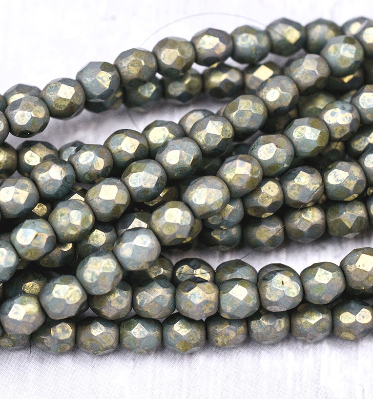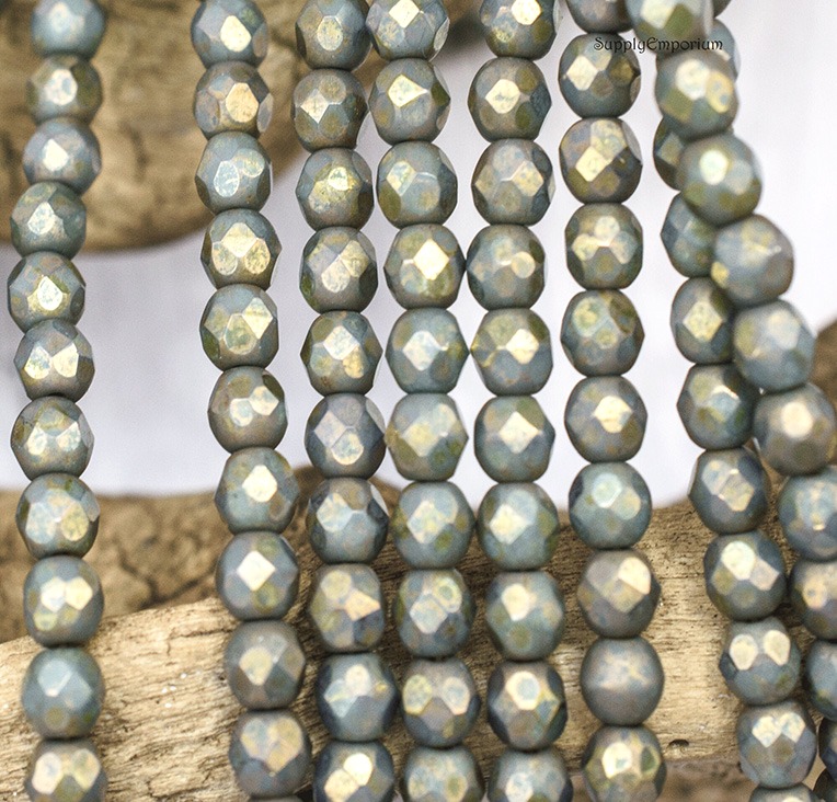 4mm Turquoise Copper Picasso Czech Fire Polish Round – 50 pieces – 5835R