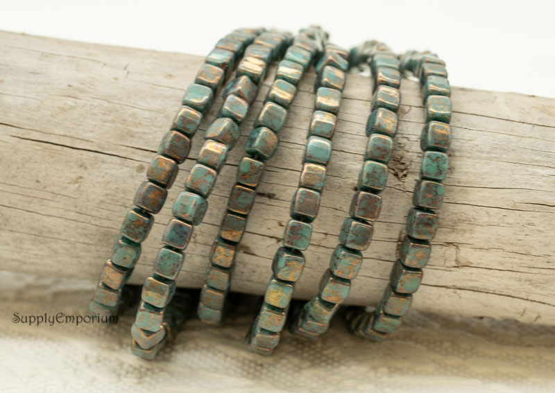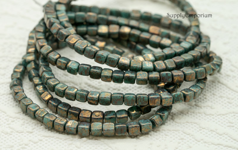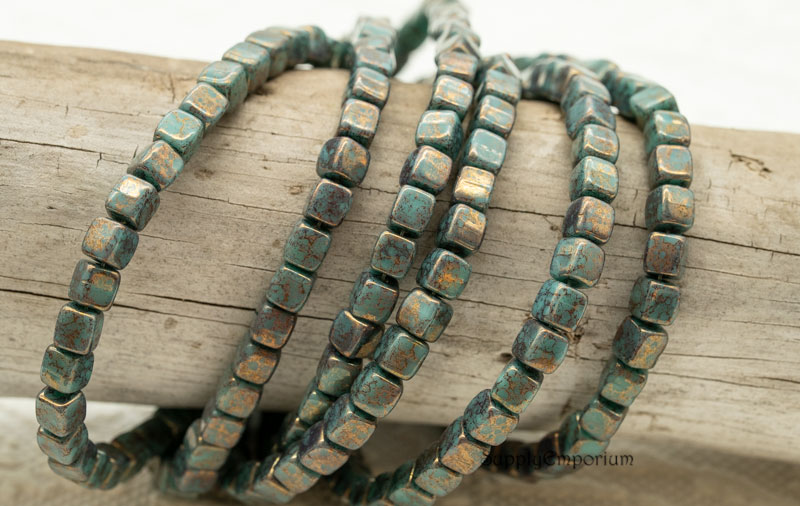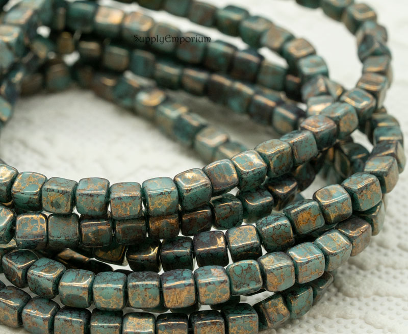 4mm Turquoise Picasso Czech Glass Rounded Cube – 40 Pieces – 6616RR
