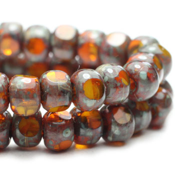 4x3mm Pumpkin Picasso Czech Glass Trica – 50 pieces – 6552R