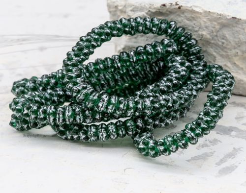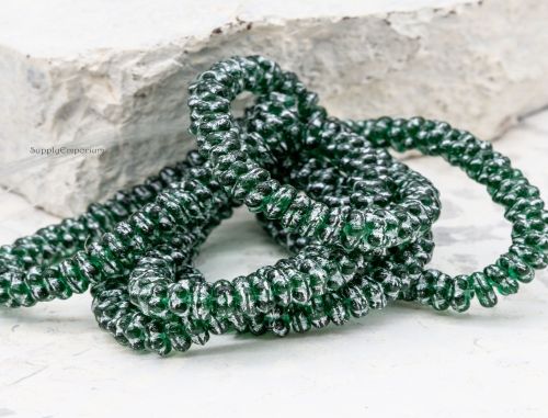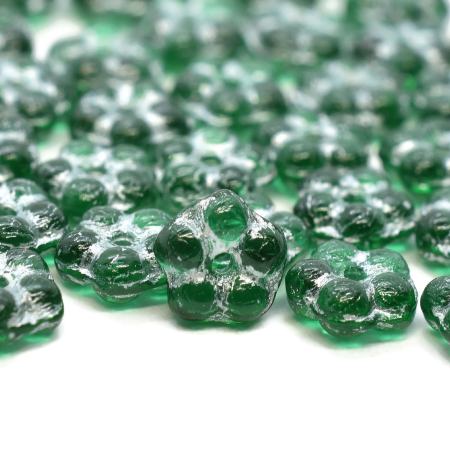 5mm Emerald Green w/Silver Wash Czech Forget Me Not Flower – 50 pieces – 3114RA