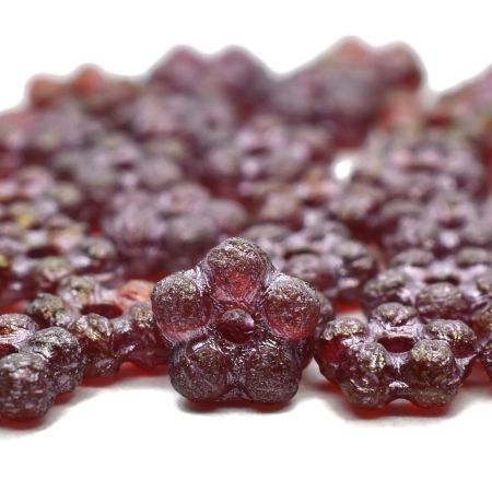 5mm Etched Gold Luster Ruby Red Czech Forget Me Not Flower – 50 pieces – 1087R