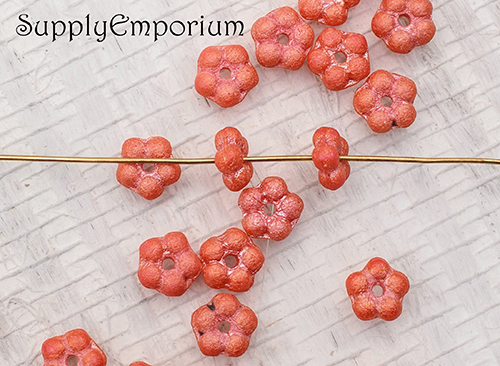 5mm Etched Watermelon Czech Forget Me Not Flower – 50 pieces – 1694R