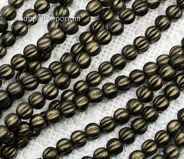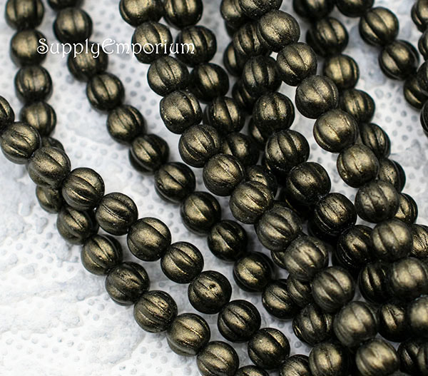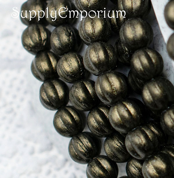 5mm Met. Suede Dk Green Czech Melon Round – 50 Pieces – 1628RR