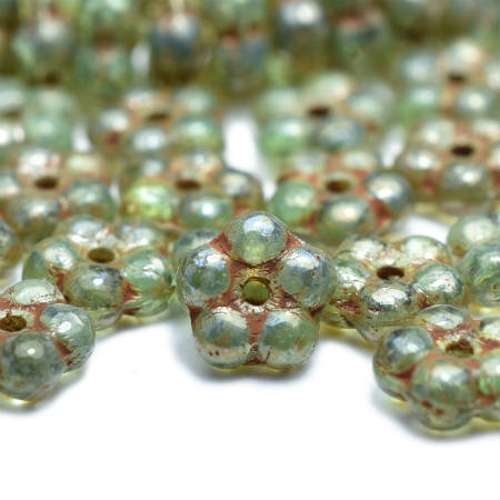 5mm Sea Green Picasso Czech Forget Me Not Flower – 50 pieces – 5500