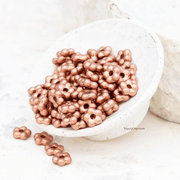5mm Vintage Copper Czech Forget Me Not Flower – 50 pieces – 3498R