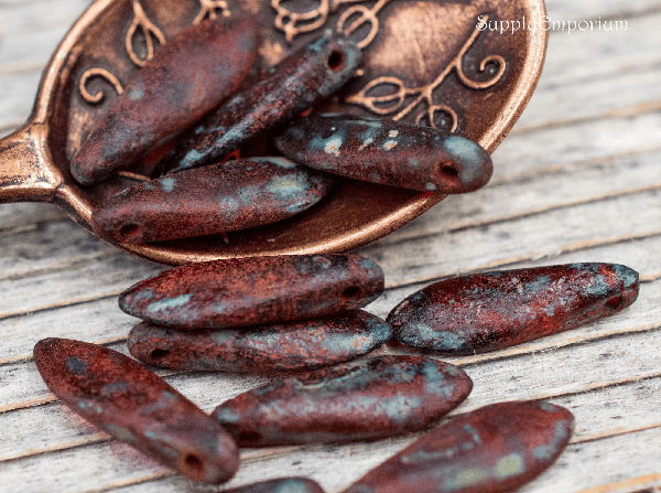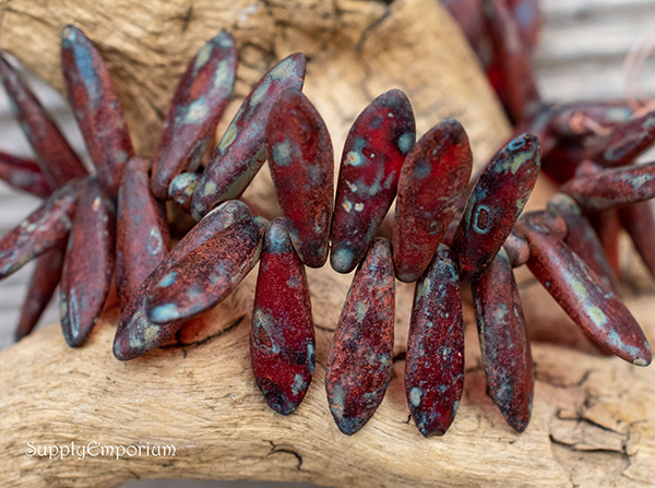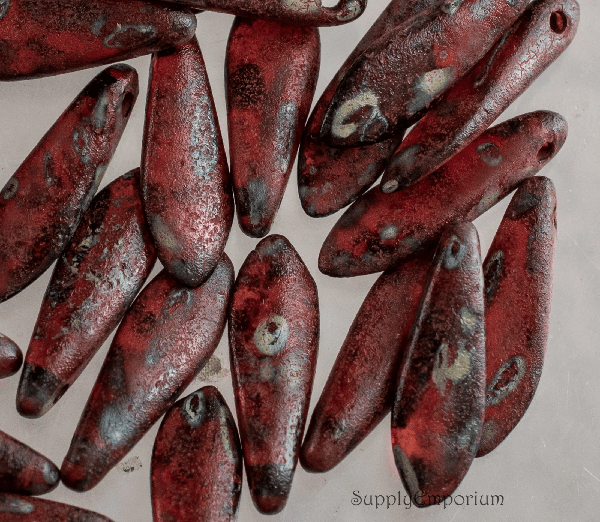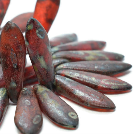 5x15mm Etched Ruby Red Picasso Czech Dagger – 25 pieces – 645R