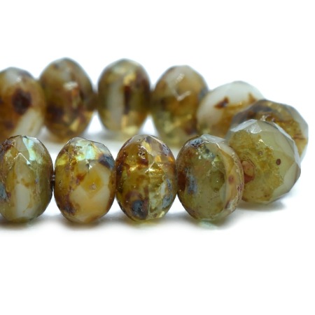 5x3mm Green Topaz White Picasso Czech Rondelle – 30 pieces – 4891