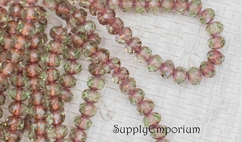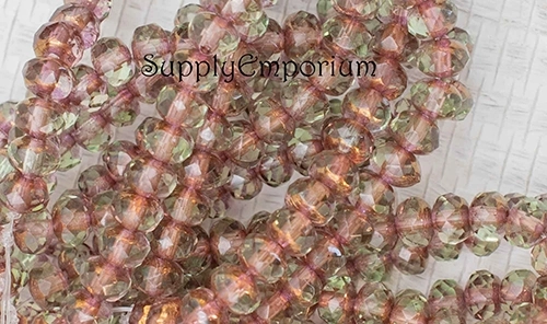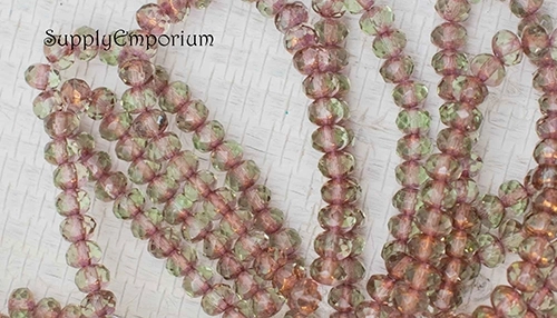5x3mm Light Green w/Bronze Czech Rondelle – 30 Pieces – 4890