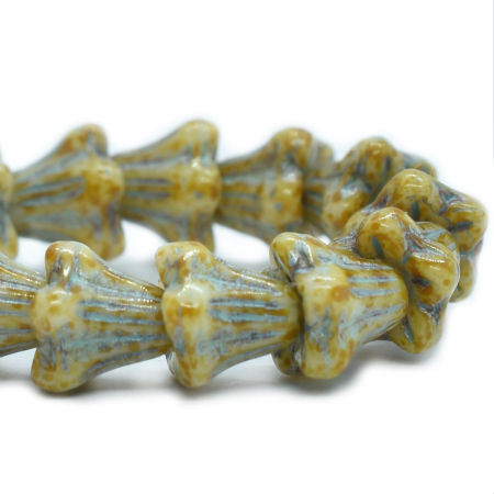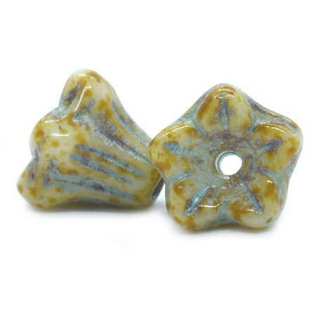 5x6mm Honey Picasso Blue Wash Czech Bell Flower – 24 pieces – 824RR