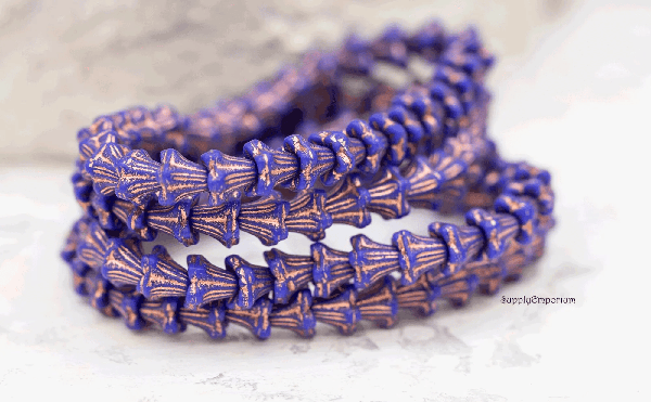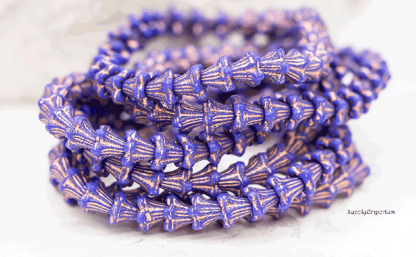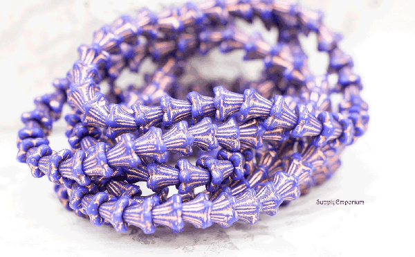 5x6mm Indigo Copper Wash Czech Bell Flower – 30 pieces – 336R