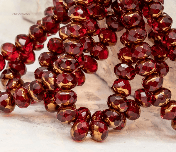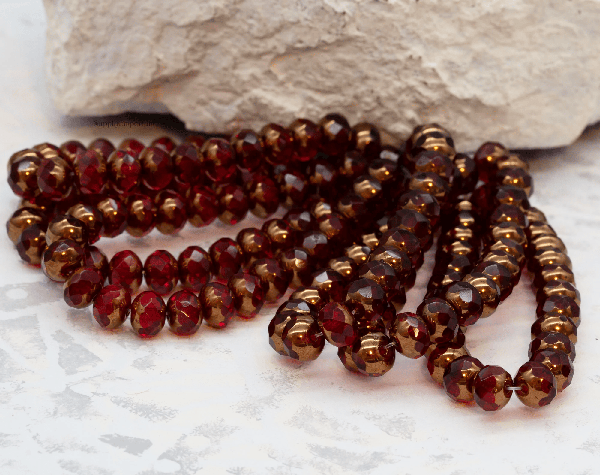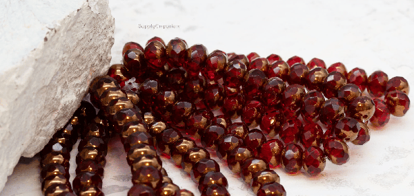 5x7mm Ruby Red with Bronze Wash Czech Rondelle – 25 pieces – 4627RR