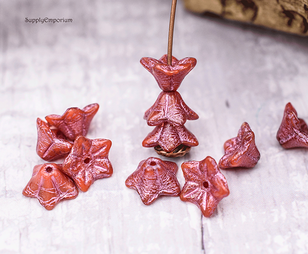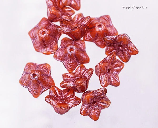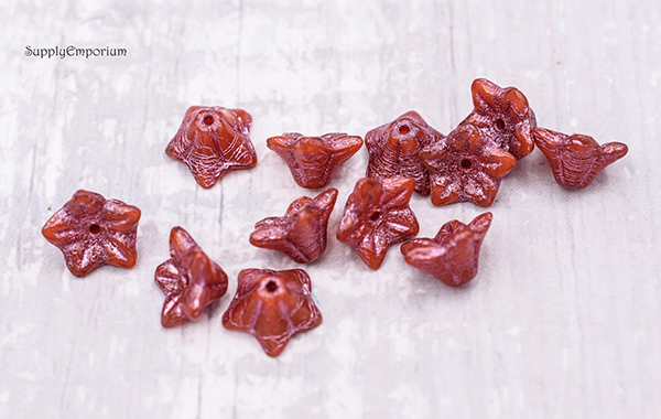 5x8mm Boysenberry with Gold and Pink Czech Bell Flower – 20 pieces – 5557R