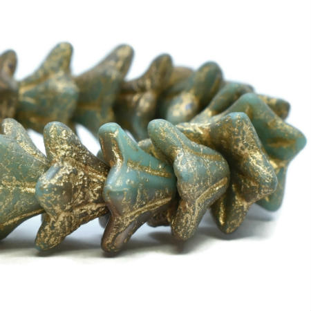 5x8mm Etch Sea Green Copper/Gold Czech Bell Flower – 25 pieces – 1591R