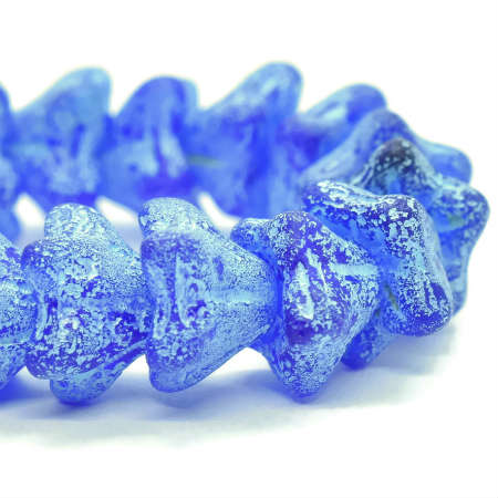 5x8mm Etched Cobalt w/Turquoise Wash Czech Bell Flower – 12 pieces – 3851R