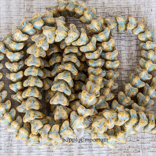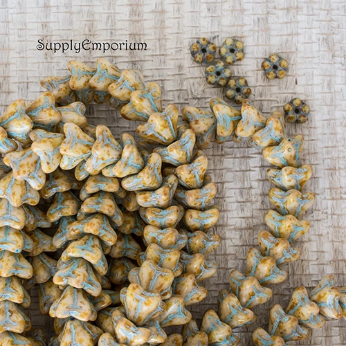 5x8mm Honey with Turquoise Wash Czech Bell Flower – 25 pieces – 5963
