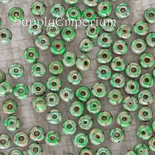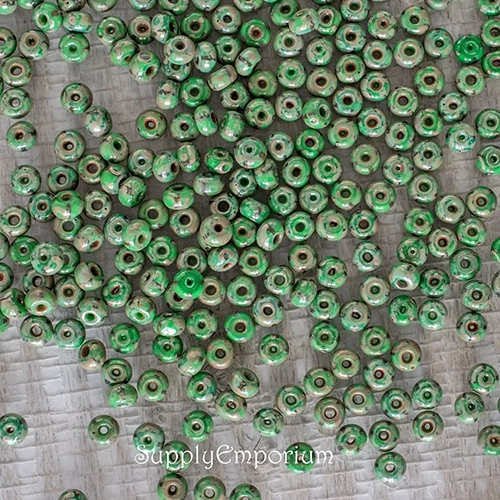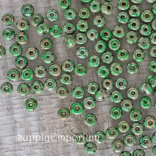 6/0 Aged Green/Yellow Stripe Picasso Czech Seed Bead – Quantity: 15 grams – 5052