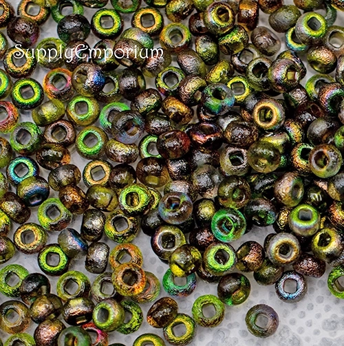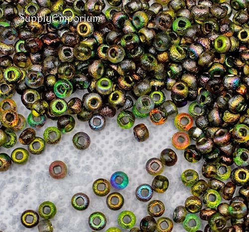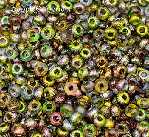 6/0 Etched Crystal Magic Green Czech Seed Bead – Quantity: 15 grams – 1545R