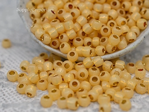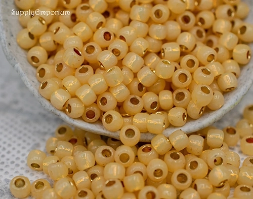 6/0 PermaFinish Transluscent Silver Lined Milky Light Topaz Toho Seed Bead – Quantity: 15 grams – 1722R