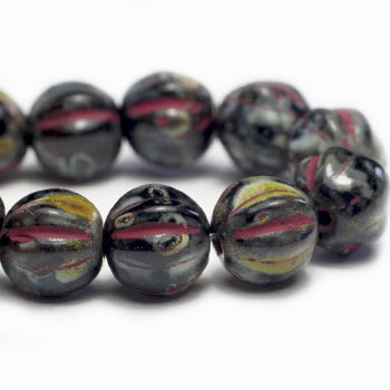 6mm Black Picasso Czech Melon Round – 25 pieces – 3059