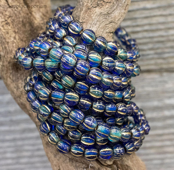 6mm Cobalt Sapphire Gold Wash Czech Large Hole Melon – 25 pieces – 1638R