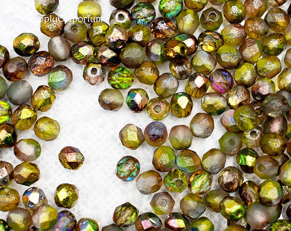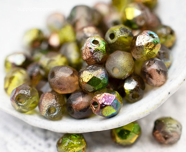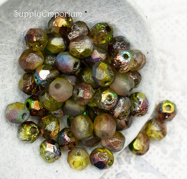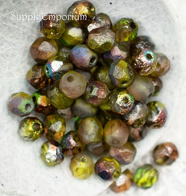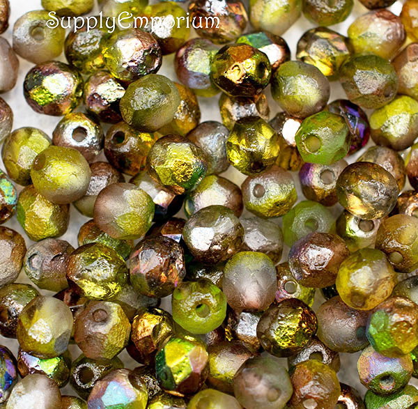 6mm Etched Crystal Magic Green Czech Fire Polish Round – 25 pieces – 1869R