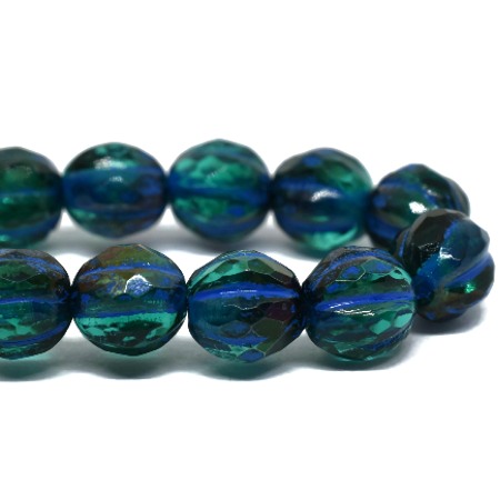 6mm Faceted Emerald/Blue Wash Czech Melon Round – 25 pieces – 2755RA